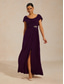 Damskie Sukienka maxi Sukienka kopertowa Sukienka A line Elegancja Formalny Gość weselny Spotkanie towarzyskie Regularny Równina Krótki rękaw W serek Wino Lato