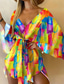 damska sukienka casualowa sukienka letnia sukienka letnia róża 3d print tie front print dekolt w serek motyl rękaw mini sukienka bohemia słodka randka wakacje pół rękaw lato wiosna
