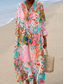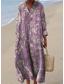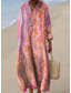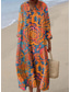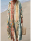 Midi sukienka damska z dekoltem w kształcie V długi rękaw kaftan lekki luźny krój sukienka w kształcie litery A codzienna boho na imprezy na wypady floralna grafika długi rękaw dekolt w kształcie V