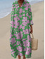 Damskie Długa sukienka sukienka maxi Sukienki z bawełny i lnu Codzienne sukienki Moda Bufka Na zewnątrz Impreza Święto Regularny Kwiat Długi rękaw Kołnierzyk koszuli Zielony Lato