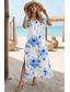 Damskie Sukienka maxi Sukienka letnia Sukienka A line Urlop Codzienny Boho Motylkowy Plaża Regularny Kwiaty Graficzny Plemienny Krótki rękaw W serek Wycięcie pod szyją Niebiesko-biały Ciemnoniebieski