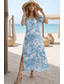 Damskie Sukienka maxi Sukienka na ramiączkach Urlop Codzienny Boho Wyjściowe Plaża Jednokolorowe Bez rękawów Cienkie ramiączka Niebieski Lato Wiosna Jesień