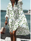 Damskie Sukienka do kolan Sukienka koszulowa Codzienne sukienki Letnie sukienki Elegancja Bohema Urlop Plaża Luźna Kwiaty Długi rękaw W serek Kołnierzyk koszuli Niebieski Żółty Jasnozielony Zielony