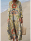 Midi sukienka damska z dekoltem w kształcie V długi rękaw kaftan lekki luźny krój sukienka w kształcie litery A codzienna boho na imprezy na wypady floralna grafika długi rękaw dekolt w kształcie V