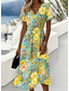 Damskie Sukienka midi Sukienka trapezowa Urlop Codzienny Boho Codzienny Letnia sukienka Wiosenna sukienka Regularny Kwiaty Graficzny Krótki rękaw Półgolf W serek Niebieski Granatowy Biały Żółty Lato