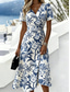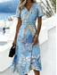 Damskie Sukienka midi Sukienka trapezowa Urlop Codzienny Boho Codzienny Letnia sukienka Wiosenna sukienka Regularny Kwiaty Graficzny Krótki rękaw Półgolf W serek Niebieski Błękit nieba Ciemnoniebieski
