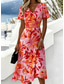 Damskie Sukienka midi Sukienka trapezowa Urlop Codzienny Boho Codzienny Letnia sukienka Wiosenna sukienka Regularny Kwiaty Graficzny Krótki rękaw W serek Niebieski Jasnoczerwony Błękit nieba Lato