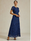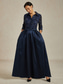 Damskie Sukienka maxi Sukienka A line Sukienki w stylu Empire Elegancja Gość weselny Spotkanie towarzyskie Błyszczący Koraliki Perły Regularny Jednokolorowe Krótki rękaw Półgolf Granatowy