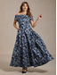 Damskie Sukienka maxi Sukienka z odkrytymi ramionami Sukienka bez ramiączek Elegancja Wieczorna impreza Żakard Kwiaty Bez rękawów Z odsłoniętymi ramionami Niebieski
