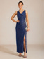 Damskie Sukienka maxi Sukienka ołówkowa Sukienka kopertowa Elegancja Wieczorna impreza Gość weselny Pofałdowany Metaliczny Regularny Jednokolorowe Bez rękawów W serek Granatowy