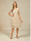 Damska sukienka do kolan z cekinami elegancka formalna sukienka sukienka w stylu A-line płaszczowa sukienka elegancka weselna gość weselny koktajlowa impreza regularny krój jednolity półrękaw dekolt