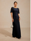 Damskie Sukienka maxi Sukienka ołówkowa Elegancja Impreza koktajl Regularny Jednokolorowe Krótki rękaw Półgolf Granatowy