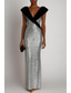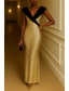 Ołówkowa Kolumnowa Sięgająca podłoża Suknie balowe Suknia wieczorowa Suknia balowa Suknia formalna Elegancja Kolorowy blok Błyszczące Krótki rękaw Z odsłoniętymi ramionami Ślub Formalny Z cekinami