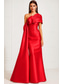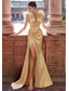 Krój A Tren w stylu sądowym Suknie balowe Suknia wieczorowa Suknia balowa Suknia formalna Zabytkowe Seksowny Wysoki split Długi rękaw Na jedno ramię Formalny Gość weselny Satyna z Pióro Rozcięciem