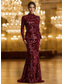 Syrena Sięgająca podłoża Suknie balowe Suknia wieczorowa Suknia balowa Suknia formalna Błyszczące Seksowny Długi rękaw W serek Formalny Gość weselny Jesienne przyjęcie weselne Z cekinami z Kokardki