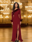 Ołówkowa Kolumnowa Tren sweep Suknie balowe Suknia wieczorowa Suknia balowa Suknia formalna Elegancja Błyszczące Fason celebrycki Długi rękaw Na jedno ramię Impreza w ogrodzie Ślub Aksamit
