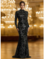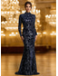 Syrena Sięgająca podłoża Suknia wieczorowa Suknia balowa z spódnicą wierzchnią Suknia formalna Elegancja Impreza Mała czarna sukienka Długi rękaw Lejący się dekolt Formalny Koronka z Cekin
