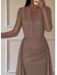 Syrena Sięgająca podłoża Suknia wieczorowa Suknia balowa z spódnicą wierzchnią Suknia formalna Elegancja Długi rękaw Linia złudzenia Karnawał Formalny Odpianane Satyna Z cekinami z Ozdoby z pere