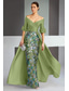 Syrena Ołówkowa Kolumnowa Sięgająca podłoża Suknia balowa z peleryną Suknia wieczorowa Elegancja Kwiaty Matka panny młodej Krótki rękaw Królowa Anna Impreza w ogrodzie Ślub Szyfon z Haftowany kwiat