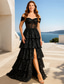 A-Linia Sukienka Na Podłogę Czarna Sukienka Na Bal Sukienka Na Przyjęcie Sukienka Na Quinceanera Elegancka Sukienka Krótki Rękaw Bez Ramiączek Sukienka Wieczorowa Ślubna z Koronkowymi Fałdami