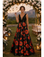 Elegancka sukienka wieczorowa w stylu syrenki/trumpeta - czerwona-czarna długa na formalne wesele z wysokim rozcięciem 3/4 rękaw dekolt w kształcie litery V rozciągliwa z falbankami