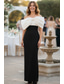 Ołówkowa Kolumnowa Sięgająca podłoża Suknia Suknia wieczorowa Sukienka peleryna Elegancja Fason celebrycki Krótki rękaw Z odsłoniętymi ramionami Ślub Formalny Rozciągliwa krepa z Z marszczeniami