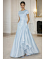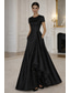 Krój A Asymetryczna Sięgająca podłoża Suknia wieczorowa Suknia balowa Suknia formalna Elegancja Jedwabisty Krótki rękaw Półgolf Ślub Formalny Kieszonki Satyna Lejący dekolt na plecach z Haftowany