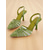 damskie buty na obcasie z lat 20. XX wieku inspirowane Gatsbym w kolorze zielonym z kryształkami – buty na obcasie z siateczki w stylu art déco na imprezy koktajlowe lub retro