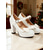 damskie białe buty na platformie i wysokich obcasach, klasyczne czółenka z okrągłym noskiem i grubym, blokowym obcasem, eleganckie lakierowane buty na świąteczne przyjęcia &zimowe stroje