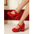 Damskie czerwone czółenka na koturnie z paskiem wokół kostki – eleganckie buty na platformie w stylu lat 50. dla miłośniczek stylu retro, na imprezy, wesela i wieczorne wyjścia