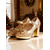Damskie złote czółenka na wysokim obcasie z odkrytym palcem, eleganckie metaliczne szpilki na imprezy świąteczne i wieczorne &formalne okazje