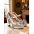 białe brokatowe czółenka z aplikacją kwiatową – eleganckie damskie buty ślubne