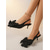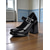 Damskie czółenka typu Mary Jane z lat 50. – eleganckie, czarne, lakierowane, ze sztucznej skóry, na klockowym obcasie z falbanką, idealne na imprezy w stylu retro i rockabilly &styl z połowy wieku