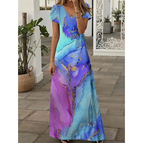 Damskie Sukienka maxi Sukienka t-shirtowa Sukienka letnia Sukienka trapezowa Letnie sukienki Elegancja Styl plażowy Impreza Święto Plaża Regularny Abstrakcja Marmurowy nadruk Krótki rękaw Półgolf