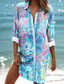 Kobieca mini sukienka koszulowa hawajska zwiewna modna guziki nadruk długi rękaw kołnierzyk długi casual wakacyjna plaża biała niebieska purpurowa letnie ubrania plażowe