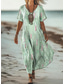 Damskie Sukienka midi Sukienka letnia Sukienka A line Urlop Codzienny Boho Plaża Wyjściowe Luźna Kwiaty Graficzny Geometryczny Długi rękaw W serek Niebieski Rumiany róż Jasnobrązowy Zielony Wiosna