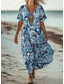 Damskie Sukienka maxi Sukienka letnia Sukienka A line Urlop Codzienny Boho Motylkowy Plaża Regularny Kwiaty Graficzny Plemienny Krótki rękaw W serek Wycięcie pod szyją Niebiesko-biały Ciemnoniebieski