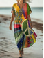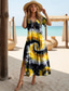 Damskie Sukienka midi Sukienka A line Letnie sukienki Sukienka rozkloszowana i dopasowana Impreza Codzienny Codzienny Święto Regularny Graficzny Geometryczny Kolorowy blok Krótki rękaw W serek Żółty