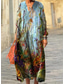 Damskie Sukienka maxi Sukienka trapezowa Sukienka letnia Urlop Codzienny Plaża Wyjściowe Luźna Graficzny Geometryczny Abstrakcja Długi rękaw W serek Niebieski Czerwony Jasnobrązowy Różowy / Czarny