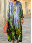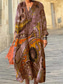 Damskie Sukienka maxi Sukienka paisley Codzienne sukienki Sukienka Boho z długim rękawem Sukienka A line Bohema Urlop Zabytkowe Codzienny Urlop Regularny Kwiaty Krótki rękaw W serek Niebieski Rumiany
