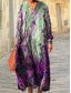 Damskie Sukienka midi Sukienka letnia Sukienka A line Urlop Codzienny Boho Wyjściowe Plaża Luźna Graficzny Geometryczny Długi rękaw W serek Fioletowy Pomarańczowy Zielony Wiosna Jesień Zima