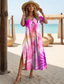 Kobiece Sukienka Maxi Sukienka Casual Sukienka Sukienka Letnia Sukienka Przesunięcie Sukienka Tropikalna Sukienka Spadająca Rękaw Wypoczynek Luźny Fit Ombre Tęczowy Gradient Krótki Rękaw Dekolt W