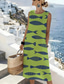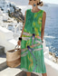 Damskie Sukienka midi Sukienka trapezowa Sukienka letnia Sukienka A line Urlop Codzienny Boho Plaża Wyjściowe Regularny Graficzny Geometryczny Bez rękawów Półgolf Niebieski Jasnozielony Zielony Lato