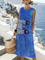 Sukienka maxi damska sukienka codzienna sukienka letnia sukienka shift sukienka wakacyjna luźny krój wzór abstrakcyjny bez rękawów okrągły dekolt niebieska lato wiosna