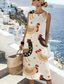 Damskie Sukienka midi Sukienka trapezowa Sukienka letnia Sukienka A line Urlop Codzienny Boho Plaża Wyjściowe Regularny Graficzny Zwierzę Bez rękawów Wycięcie pod szyją Biały Błękit nieba Beżowy Lato