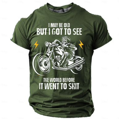 Męska koszulka z krótkim rękawem z grafiką 'Stary ale widziałem świat zanim poszedł na dno' - zabawny styl życia motocyklisty