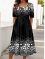 Damskie Sukienka mini Sukienka A line Letnie sukienki Codzienny Codzienny Regularny Graficzny Krótki rękaw Karbowana szyja Czarny Biały Rumiany róż Zielony Lato