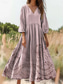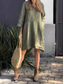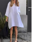 Kobiece midi sukienka z bawełny i lnu w kształcie litery A letnia sukienka codzienna luźna prosta rękaw 3/4 dekolt notch biała fioletowa zielona zielona wojskowa lato