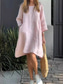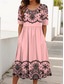 Sukienka mini z lnu przypominającego sztuczny bawełniany len sukienka letnia zwykła codzienna regularny krój graficzny rękaw 3/4 okrągły dekolt biały różowy zielony jasnoszary lato