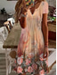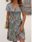 Kobieca Midi Sukienka Kwiatowy Graficzny Zmarszczony Guzik V Szyja Codzienna Wakacyjna Krótki Rękaw Lato Wiosna